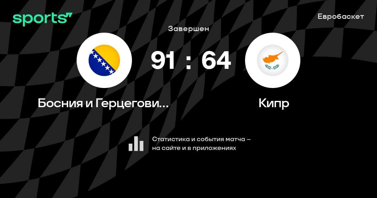В прошедшем матче в рамках турнира Евробаскет состоялась встреча команд Босния и Герцеговина - Кипр в городе на стадионе Spyros Kyprianou Athletic Center