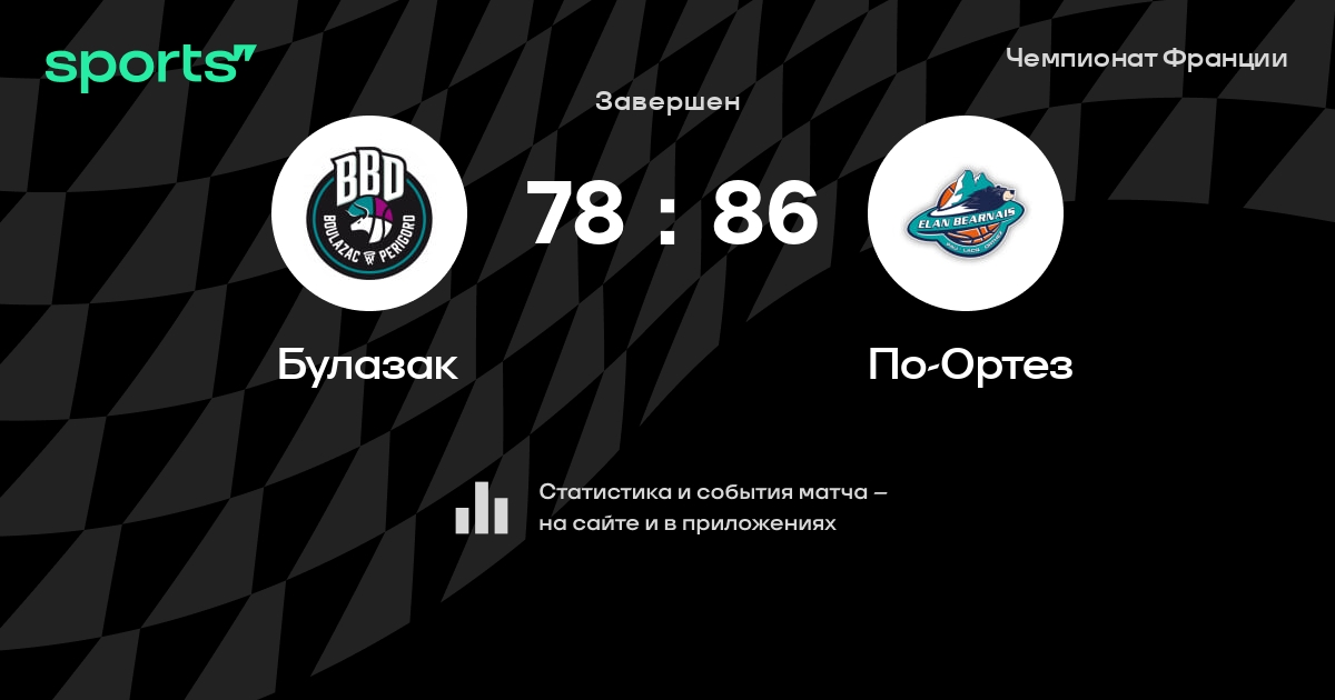 В прошедшем матче в рамках турнира Чемпионат Франции состоялась встреча команд Булазак - По-Ортез в городе на стадионе Salle des sports du Palio
