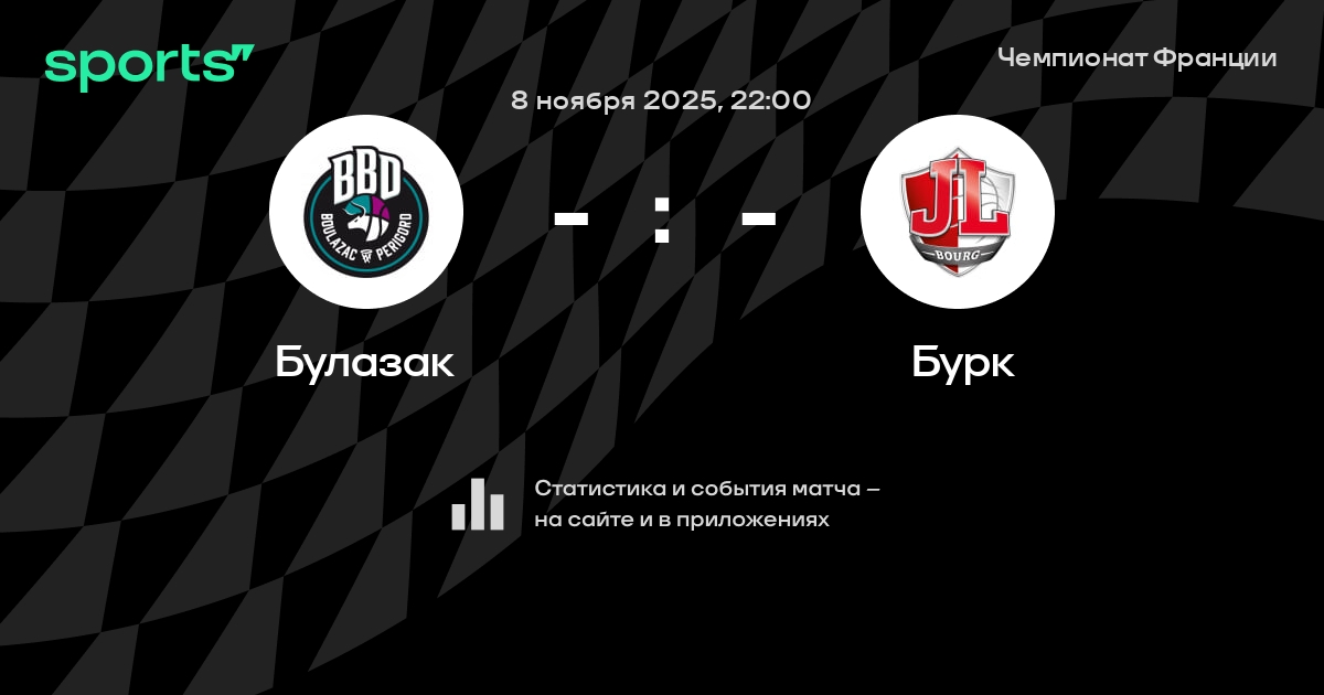 В предстоящем матче в рамках турнира Чемпионат Франции пройдет встреча команд Булазак - Бурк в городе на стадионе Salle des sports du Palio.