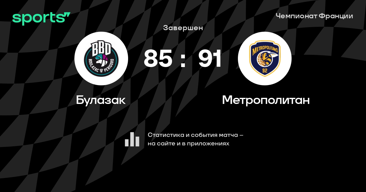 В прошедшем матче в рамках турнира Чемпионат Франции состоялась встреча команд Булазак - Метрополитан в городе на стадионе Salle des sports du Palio