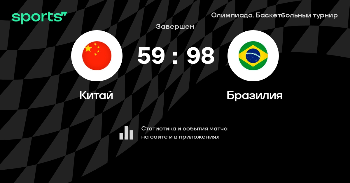 В прошедшем матче в рамках турнира Олимпиада. Баскетбольный турнир (Группа B) состоялась встреча команд Китай - Бразилия в городе Лондон (Англия) на стадионе Баскетбольная Олимпийская Арена (вместимость - 12000)