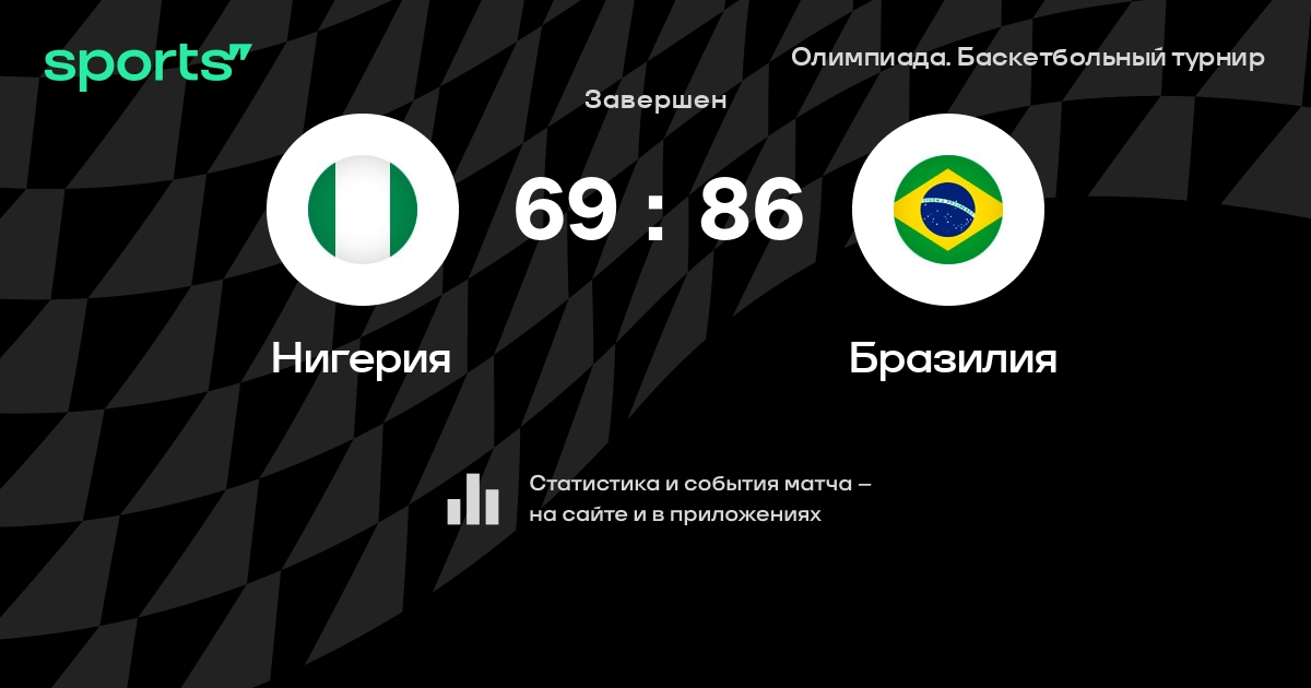 В прошедшем матче в рамках турнира Олимпиада. Баскетбольный турнир состоялась встреча команд Нигерия - Бразилия в городе Rio de Janeiro на стадионе Carioca Arena 1