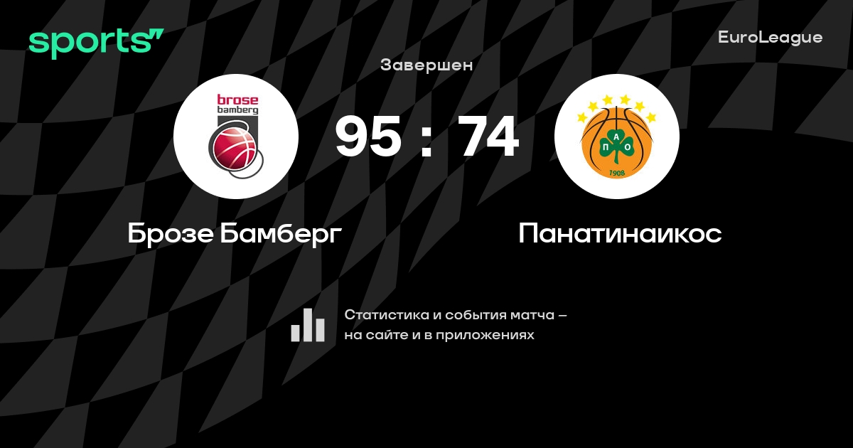 В прошедшем матче в рамках турнира EuroLeague состоялась встреча команд Брозе Бамберг - Панатинаикос в городе Бамберг (Германия) на стадионе Брозе Арена (вместимость - 6800)