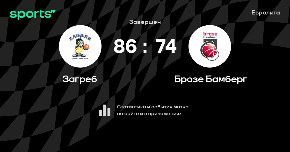 В прошедшем матче в рамках турнира Евролига (Группа B) состоялась встреча команд Загреб - Брозе Бамберг в городе Zagreb на стадионе Dvorana Trnsko