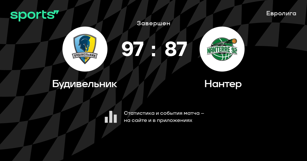 В прошедшем матче в рамках турнира Евролига (Группа A) состоялась встреча команд Будивельник - Нантер в городе Киев (Украина) на стадионе Дворец спорта (вместимость - 6800)