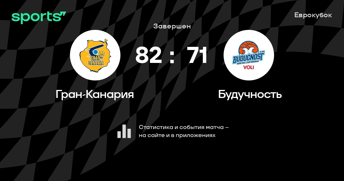 В прошедшем матче в рамках турнира Еврокубок состоялась встреча команд Гран-Канария - Будучность в городе Лас-Пальмас-де-Гран-Канария (Испания) на стадионе Гран-Канария Арена (вместимость - 9865)