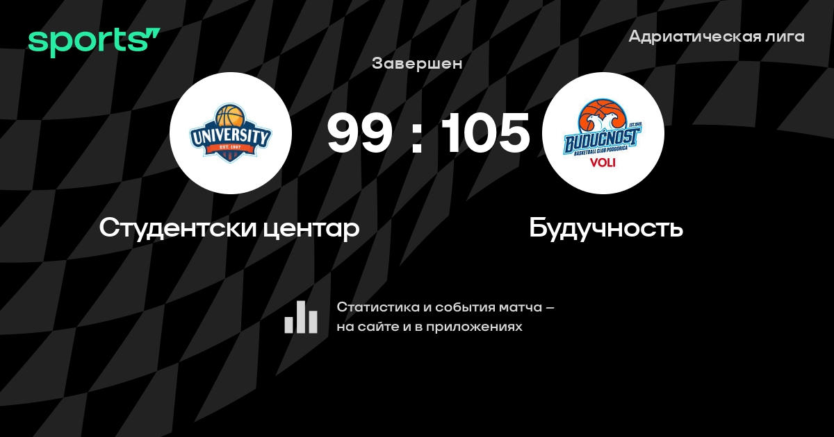В прошедшем матче в рамках турнира Адриатическая лига состоялась встреча команд Студентски центар - Будучность в городе Подгорица (Черногория) на стадионе Морача (вместимость - 6000)