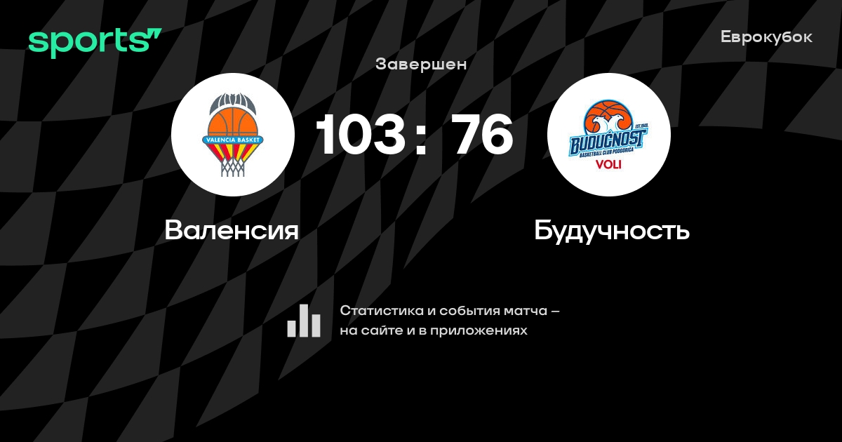 В прошедшем матче в рамках турнира Еврокубок состоялась встреча команд Валенсия - Будучность в городе Валенсия (Испания) на стадионе Ла Фонтета (вместимость - 9000)
