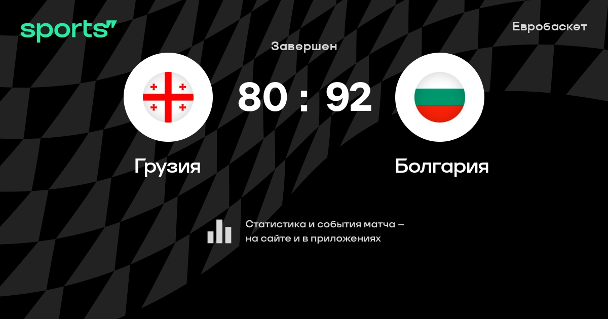 В прошедшем матче в рамках турнира Евробаскет состоялась встреча команд Грузия - Болгария в городе Тбилиси (Грузия) на стадионе Дворец спорта (вместимость - 9700)