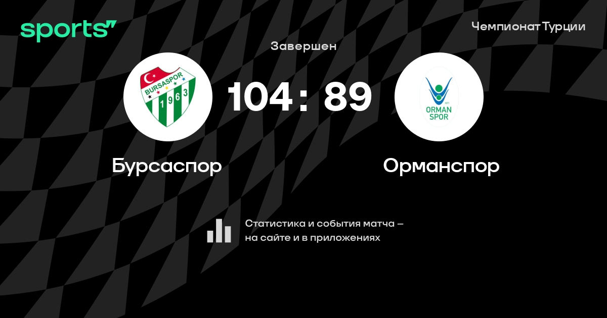 В прошедшем матче в рамках турнира Чемпионат Турции состоялась встреча команд Бурсаспор - Орманспор в городе на стадионе Tofaş Spor Salonu