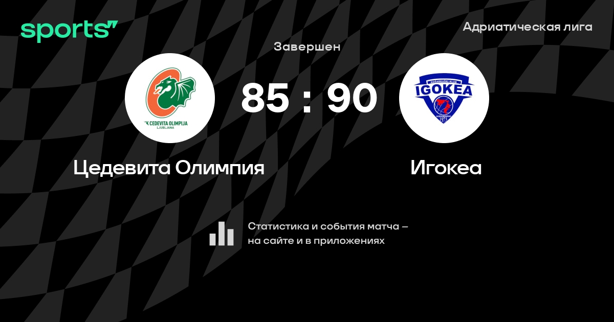 В прошедшем матче в рамках турнира Адриатическая лига состоялась встреча команд Цедевита Олимпия - Игокеа в городе Ljubljana на стадионе Hala Tivoli