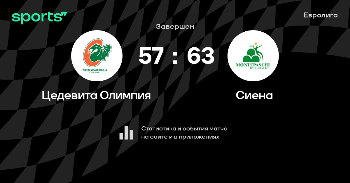 В прошедшем матче в рамках турнира Евролига (Группа D) состоялась встреча команд Цедевита Олимпия - Сиена в городе Ljubljana на стадионе Hala Tivoli