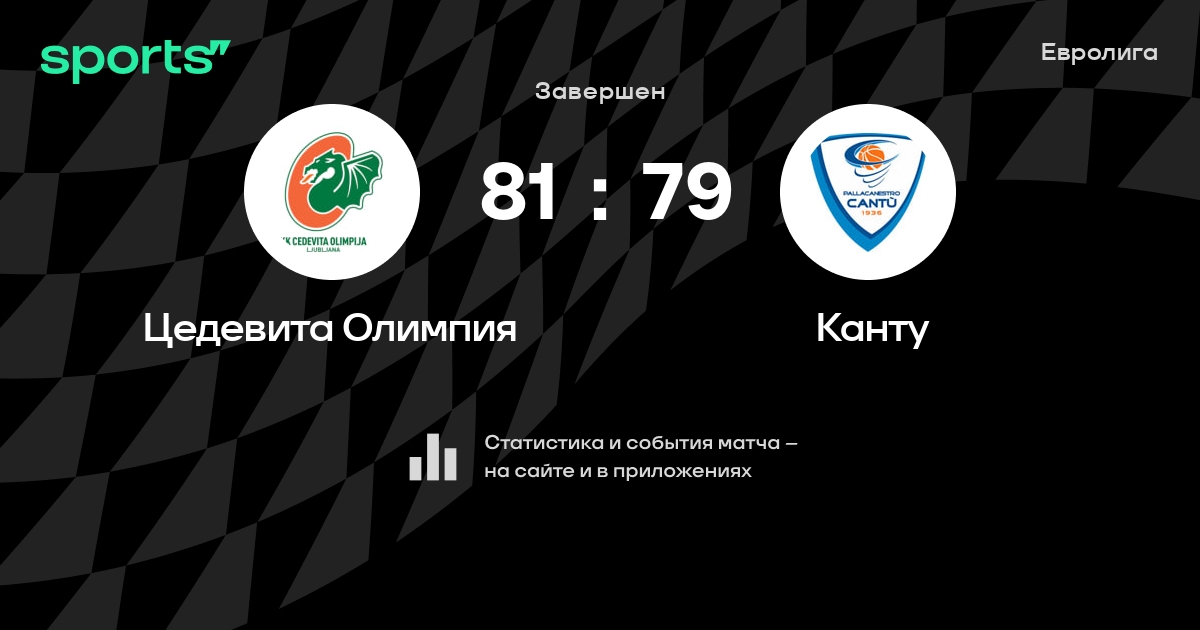 В прошедшем матче в рамках турнира Евролига (Группа A) состоялась встреча команд Цедевита Олимпия - Канту в городе Любляна (Словения) на стадионе Арена Стожице (вместимость - 12480)