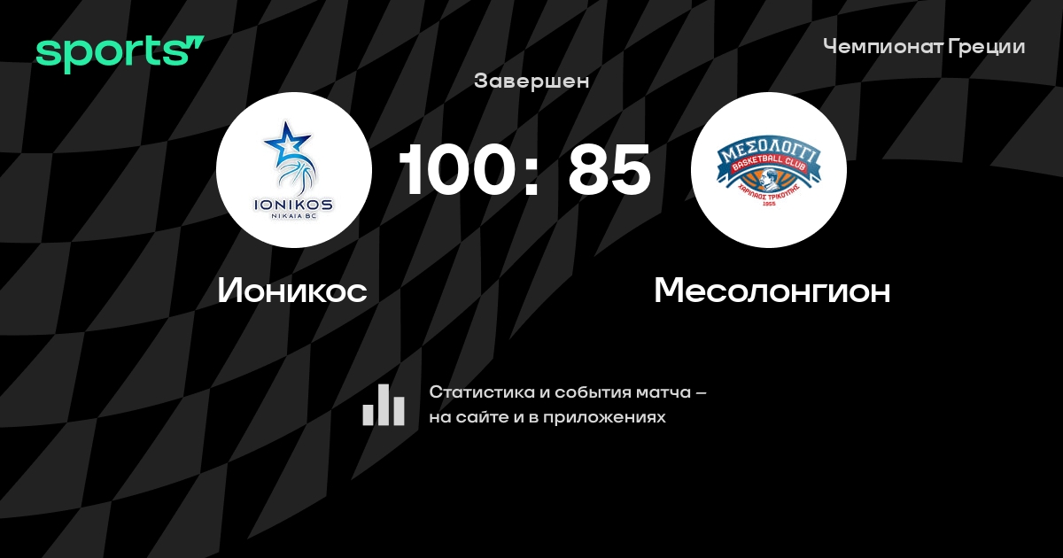 В прошедшем матче в рамках турнира Чемпионат Греции состоялась встреча команд Ионикос - Месолонгион в городе на стадионе Kleisto Gymnastirio DAK Nikaias Platonas