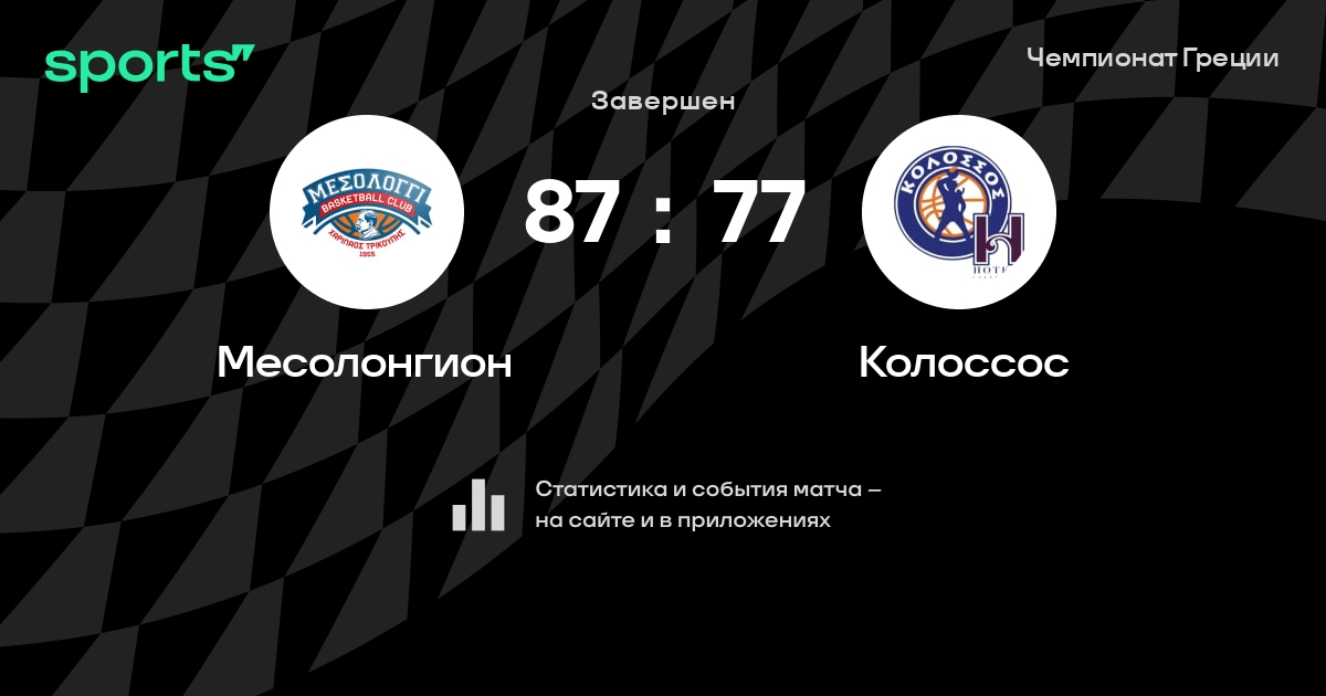 В прошедшем матче в рамках турнира Чемпионат Греции состоялась встреча команд Месолонгион - Колоссос в городе на стадионе Kleisto DAK Agriniou Mihalis Kousis