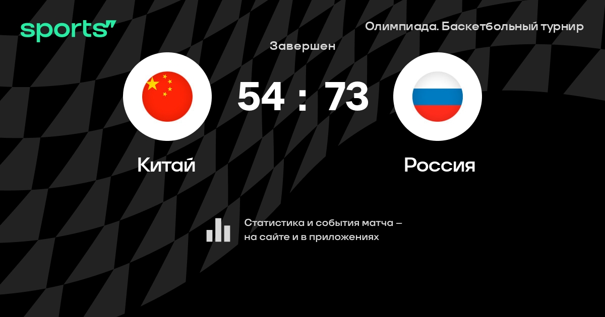 В прошедшем матче в рамках турнира Олимпиада. Баскетбольный турнир (Группа B) состоялась встреча команд Китай - Россия в городе Лондон (Англия) на стадионе Баскетбольная Олимпийская Арена (вместимость - 12000)