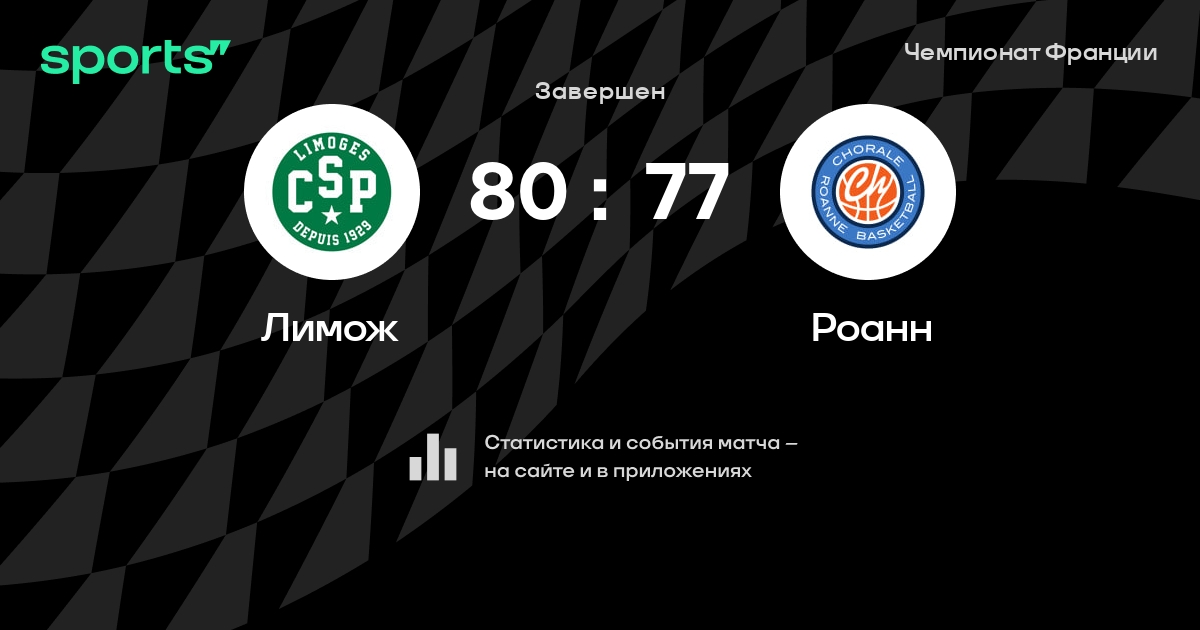 В прошедшем матче в рамках турнира Чемпионат Франции состоялась встреча команд Лимож - Роанн в городе на стадионе Palais des sports de Beaublanc