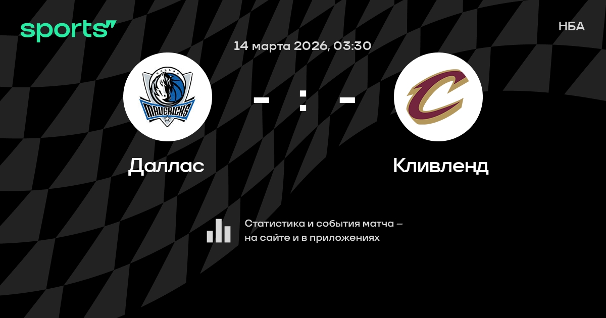 В предстоящем матче в рамках турнира НБА пройдет встреча команд Даллас - Кливленд в городе Даллас (США) на стадионе American Airlines Center (вместимость - 21041). Начало встречи запланировано на 03:30 14 марта 2026.