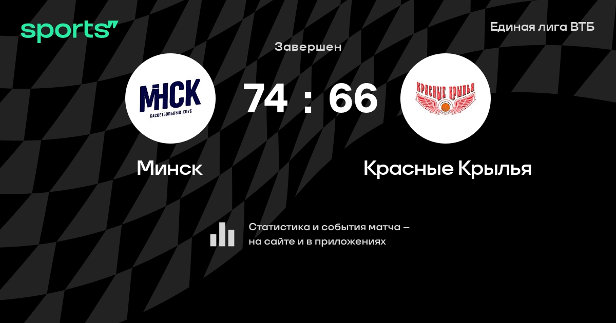 В прошедшем матче в рамках турнира Единая лига ВТБ состоялась встреча команд Минск - Красные Крылья в городе Минск (Беларусь) на стадионе Минск-Арена (вместимость - 15086)