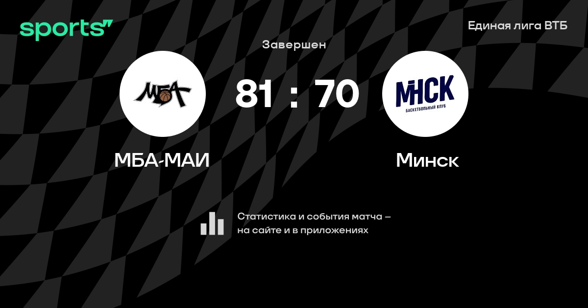 В прошедшем матче в рамках турнира Единая лига ВТБ состоялась встреча команд МБА-МАИ - Минск в городе Москва (Россия) на стадионе Баскет Холл Москва (вместимость - 5000)