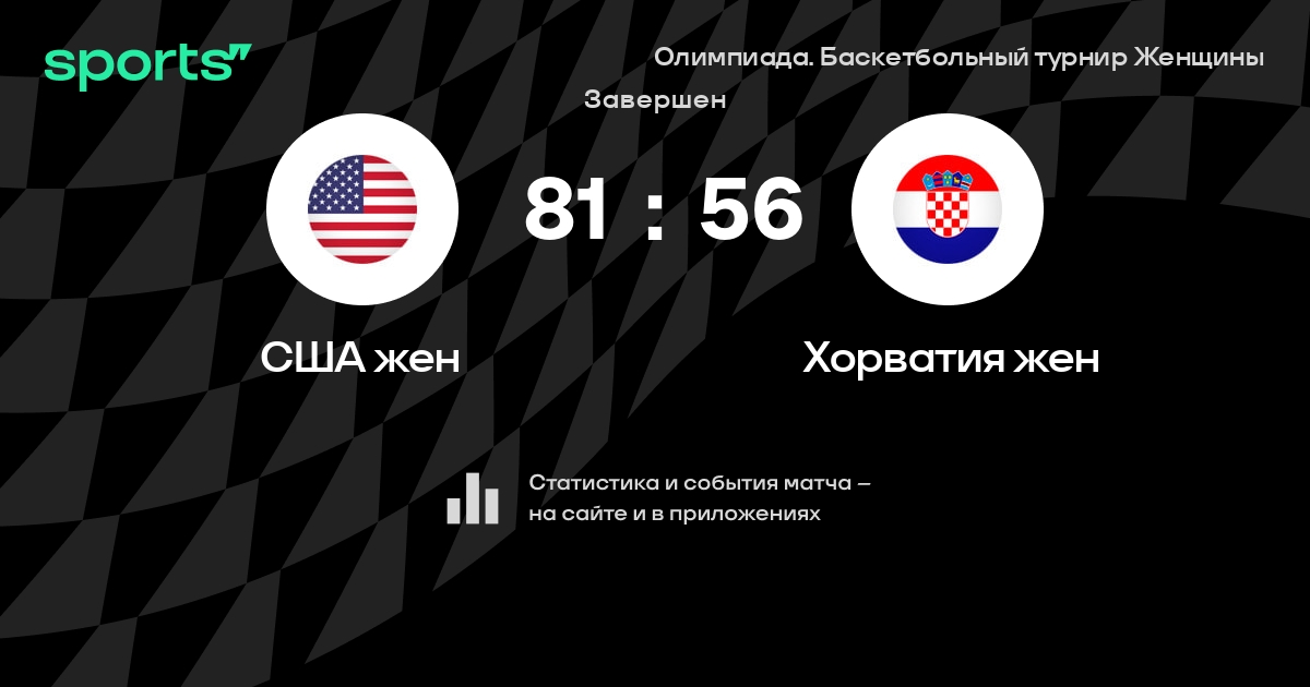 В прошедшем матче в рамках турнира Олимпиада. Баскетбольный турнир Женщины (Группа A) состоялась встреча команд США жен - Хорватия жен в городе Лондон (Англия) на стадионе Баскетбольная Олимпийская Арена (вместимость - 12000)