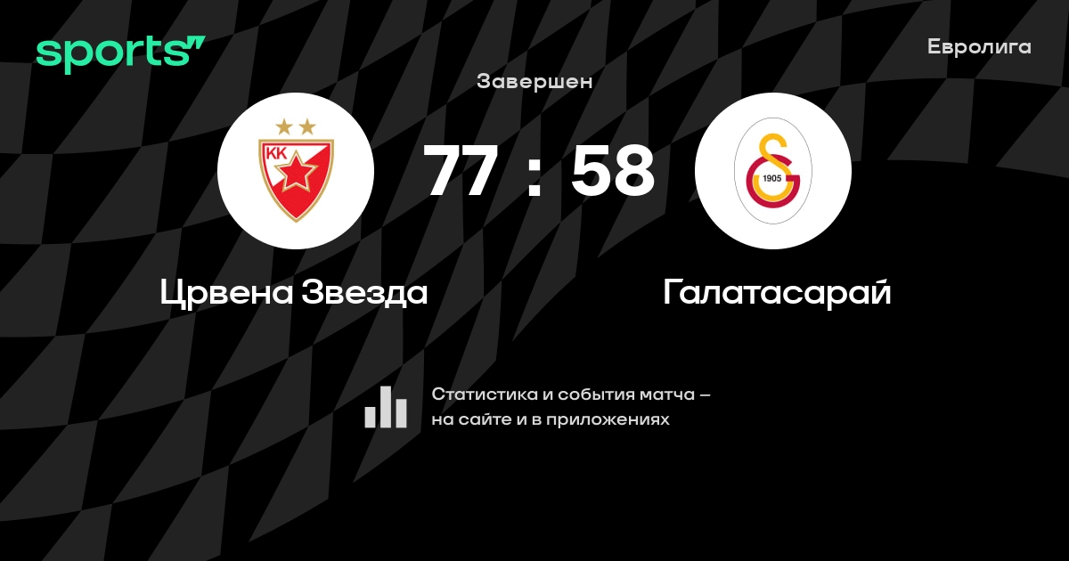 В прошедшем матче в рамках турнира Евролига состоялась встреча команд Црвена Звезда - Галатасарай в городе Белград (Сербия) на стадионе Александар Николич Холл (вместимость - 7000)