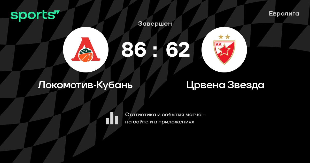 В прошедшем матче в рамках турнира Евролига (Топ-16. 12 тур) состоялась встреча команд Локомотив-Кубань - Црвена Звезда в городе Малага (Испания) на стадионе Паласио де Депортес де Малага (вместимость - 10500)