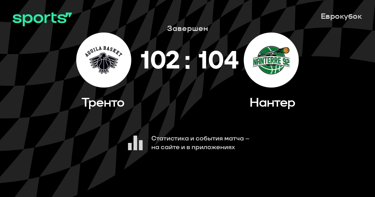 В прошедшем матче в рамках турнира Еврокубок состоялась встреча команд Тренто - Нантер в городе на стадионе PalaTrento