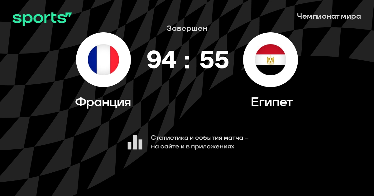 В прошедшем матче в рамках турнира Чемпионат мира (Группа А) состоялась встреча команд Франция - Египет в городе Гранада (Испания) на стадионе Паласио Мунисипаль де Депортес (вместимость - 7358)