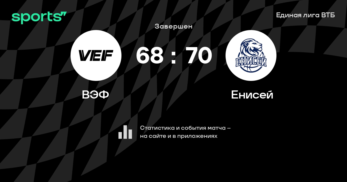В прошедшем матче в рамках турнира Единая лига ВТБ состоялась встреча команд ВЭФ - Енисей в городе Рига (Латвия) на стадионе Олимпийский спортивный центр (вместимость - 2500)