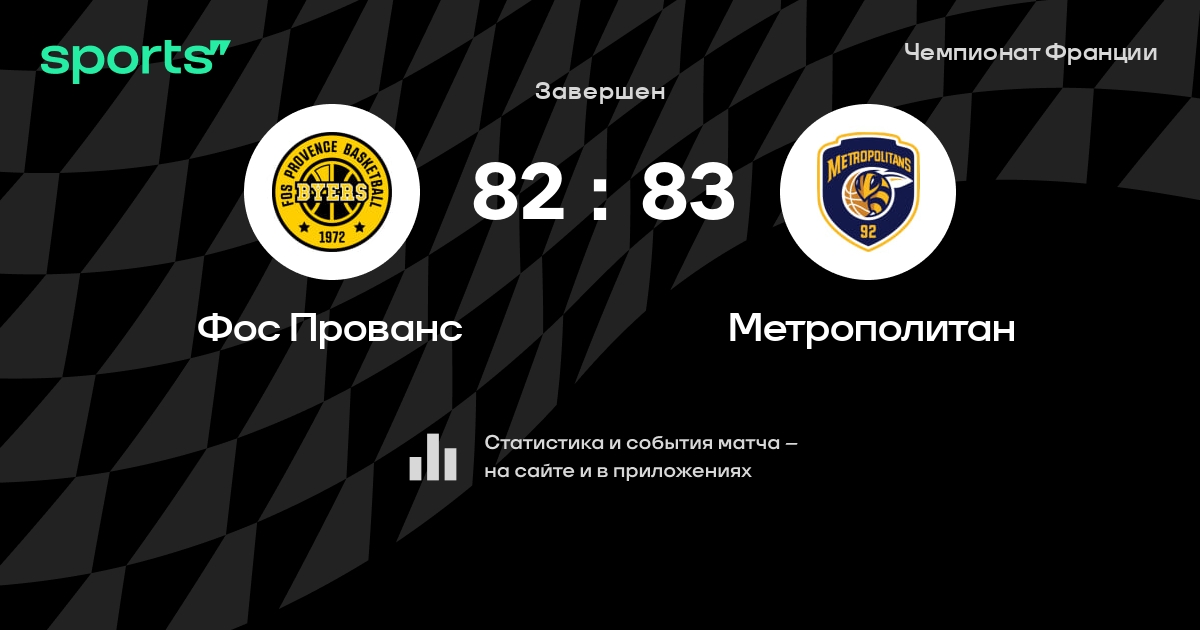В прошедшем матче в рамках турнира Чемпионат Франции состоялась встреча команд Фос Прованс - Метрополитан в городе на стадионе Palais des sports de Marseille