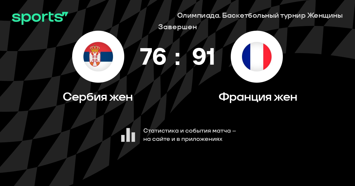 В прошедшем матче в рамках турнира Олимпиада. Баскетбольный турнир Женщины (Матч за 3-е место) состоялась встреча команд Сербия жен - Франция жен в городе Saitama на стадионе Saitama Super Arena