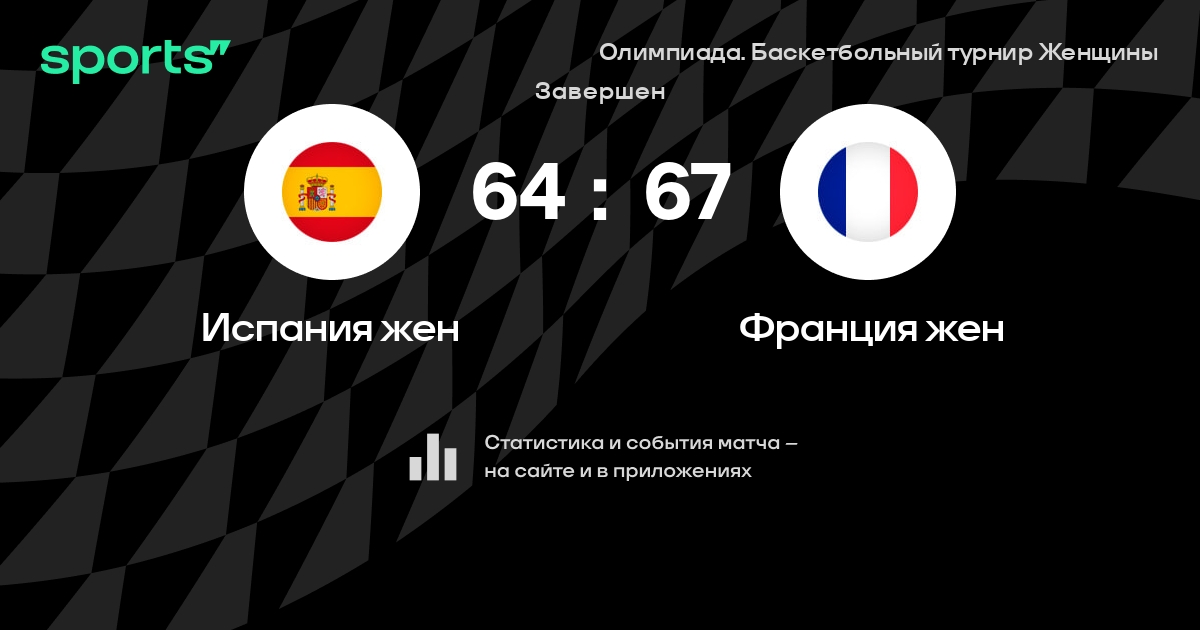В прошедшем матче в рамках турнира Олимпиада. Баскетбольный турнир Женщины (Четвертьфинал) состоялась встреча команд Испания жен - Франция жен в городе Saitama на стадионе Saitama Super Arena