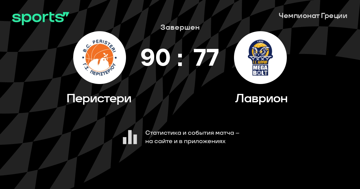 В прошедшем матче в рамках турнира Чемпионат Греции (Плей-ин) состоялась встреча команд Перистери - Лаврион в городе на стадионе Kleisto Andreas Papandreou