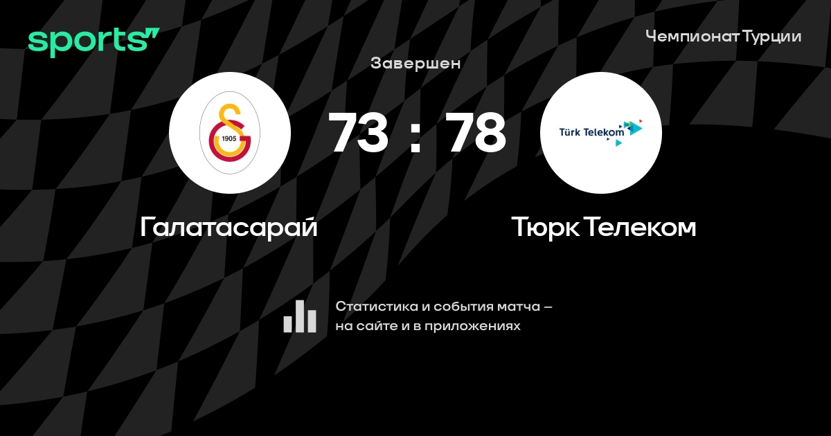 В прошедшем матче в рамках турнира Чемпионат Турции состоялась встреча команд Галатасарай - Тюрк Телеком в городе Стамбул (Турция) на стадионе Центр развития баскетбола (вместимость - 10000)