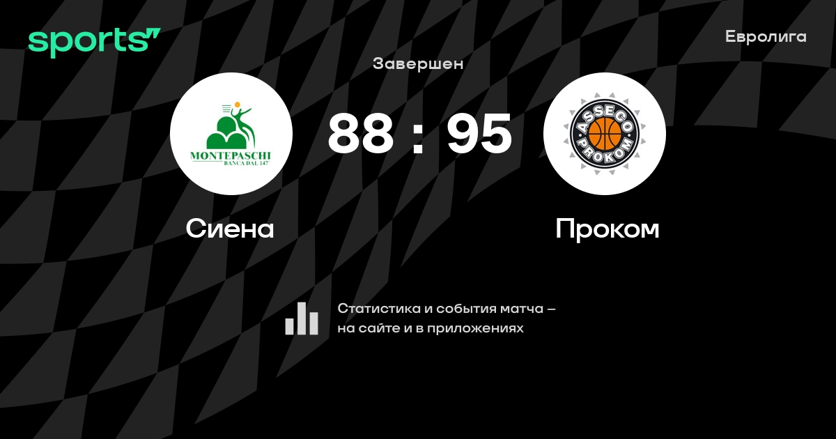В прошедшем матче в рамках турнира Евролига (Группа B) состоялась встреча команд Сиена - Проком в городе Сиена (Италия) на стадионе ПалаЭстра (вместимость - 1976)