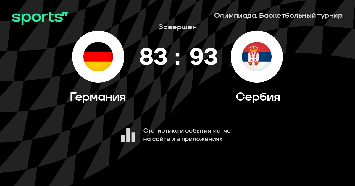 В прошедшем матче в рамках турнира Олимпиада. Баскетбольный турнир (Матч за 3-е место) состоялась встреча команд Германия - Сербия в городе Париж (Франция) на стадионе Аккор Арена (вместимость - 15609)