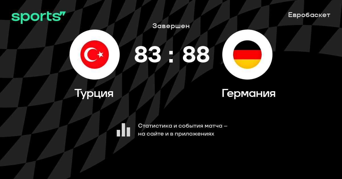 В прошедшем матче в рамках турнира Евробаскет (Финал) состоялась встреча команд Турция - Германия в городе на стадионе Arena Riga
