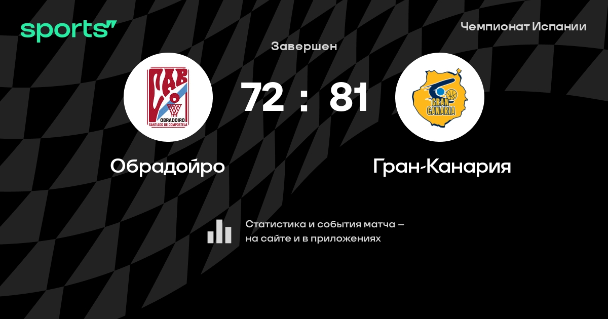 В прошедшем матче в рамках турнира Чемпионат Испании состоялась встреча команд Обрадойро - Гран-Канария в городе Santiago de Compostela на стадионе Pabellón Multiusos Fontes do Sar