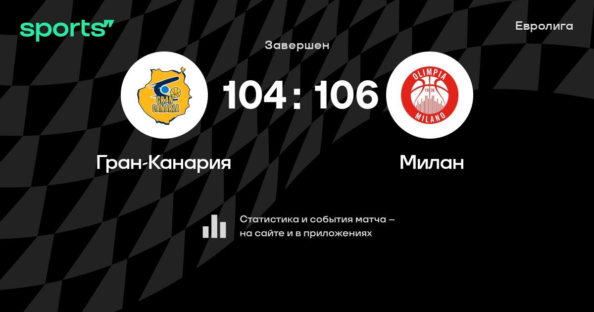 В прошедшем матче в рамках турнира Евролига состоялась встреча команд Гран-Канария - Милан в городе Лас-Пальмас-де-Гран-Канария (Испания) на стадионе Гран-Канария Арена (вместимость - 9865)