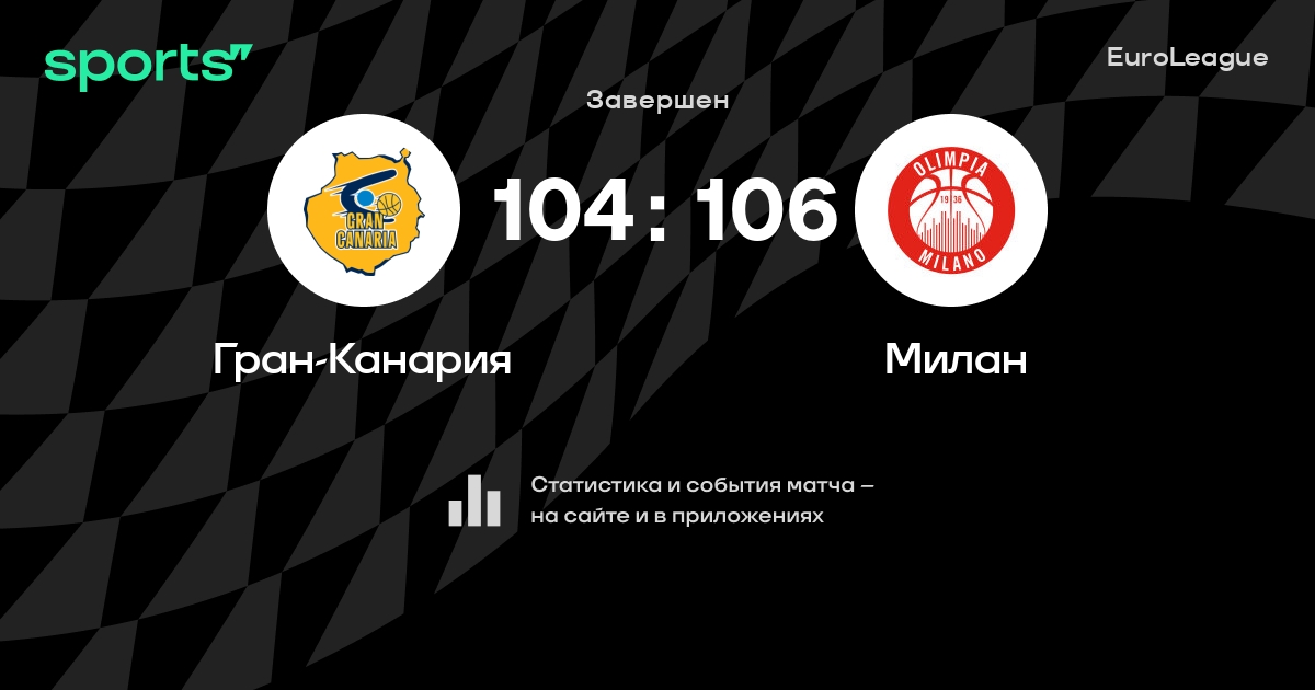 В прошедшем матче в рамках турнира EuroLeague состоялась встреча команд Гран-Канария - Милан в городе Лас-Пальмас-де-Гран-Канария (Испания) на стадионе Гран-Канария Арена (вместимость - 9865)