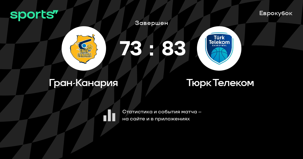 В прошедшем матче в рамках турнира Еврокубок состоялась встреча команд Гран-Канария - Тюрк Телеком в городе Лас-Пальмас-де-Гран-Канария (Испания) на стадионе Гран-Канария Арена (вместимость - 9865)