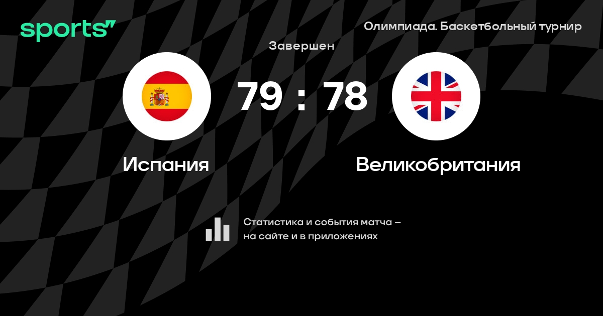 В прошедшем матче в рамках турнира Олимпиада. Баскетбольный турнир (Группа B) состоялась встреча команд Испания - Великобритания в городе Лондон (Англия) на стадионе Баскетбольная Олимпийская Арена (вместимость - 12000)