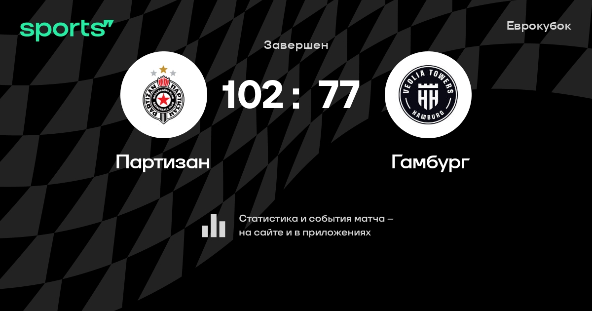 В прошедшем матче в рамках турнира Еврокубок состоялась встреча команд Партизан - Гамбург в городе Белград (Сербия) на стадионе Александар Николич Холл (вместимость - 7000)