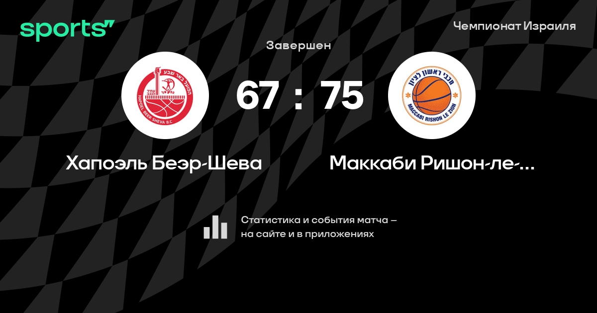 В прошедшем матче в рамках турнира Чемпионат Израиля состоялась встреча команд Хапоэль Беэр-Шева - Маккаби Ришон-ле-Цион в городе Be'er Sheva на стадионе Conch Arena