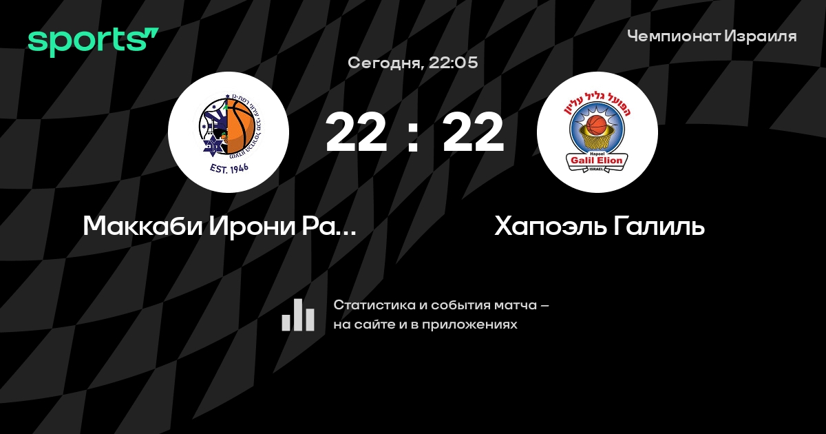В предстоящем матче в рамках турнира Чемпионат Израиля пройдет встреча команд Маккаби Ирони Рамат-Ган - Хапоэль Галиль в городе на стадионе Zisman Sports Hall.