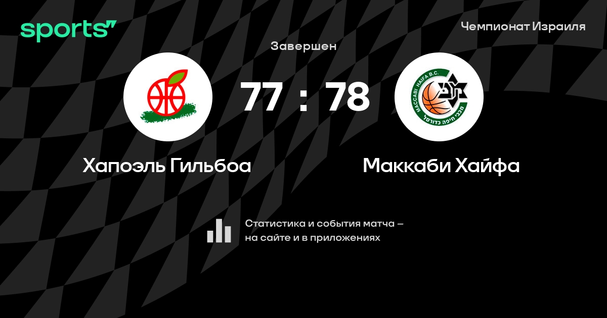В прошедшем матче в рамках турнира Чемпионат Израиля состоялась встреча команд Хапоэль Гильбоа - Маккаби Хайфа в городе Gan Ner на стадионе Gan Ner Sports Hall