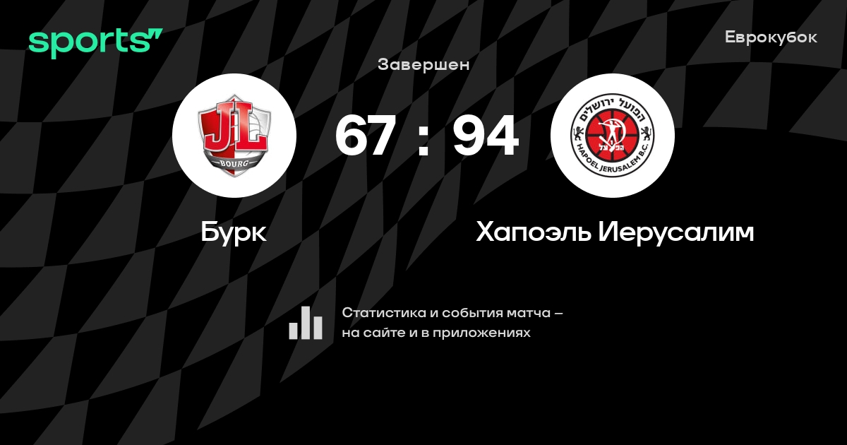 В прошедшем матче в рамках турнира Еврокубок состоялась встреча команд Бурк - Хапоэль Иерусалим в городе на стадионе Ekinox