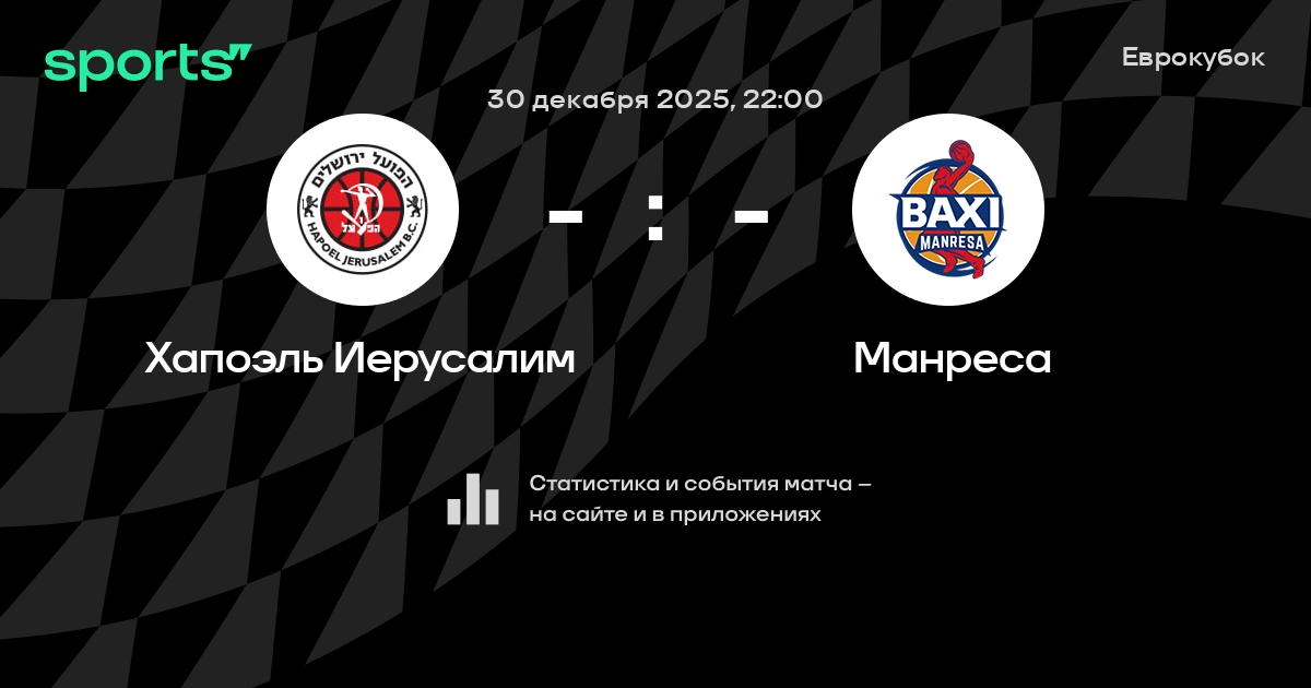 В предстоящем матче в рамках турнира Еврокубок пройдет встреча команд Хапоэль Иерусалим - Манреса .