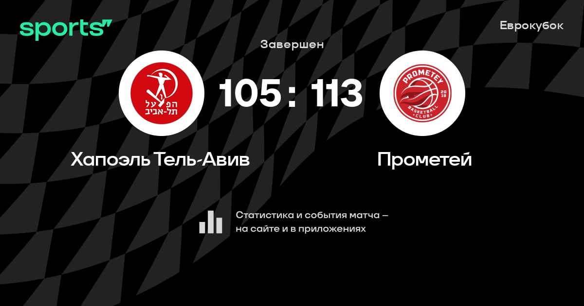В прошедшем матче в рамках турнира Еврокубок состоялась встреча команд Хапоэль Тель-Авив - Прометей в городе Белград (Сербия) на стадионе Александар Николич Холл (вместимость - 7000)